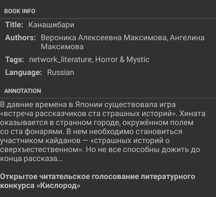 >>26025 Ох. Девочка просто поиск по OPDS, "Канашибари" - а он только по названиям книг - не серий. А те три томика с переведённым названием. И так нашлась только СИшная версия первого тома - от 23 года - а там клиффхэнгер. Вот так вот. Сейчас девочка текст diffнула - разбивка на главы чуть иная, но в остальном разницы немного.